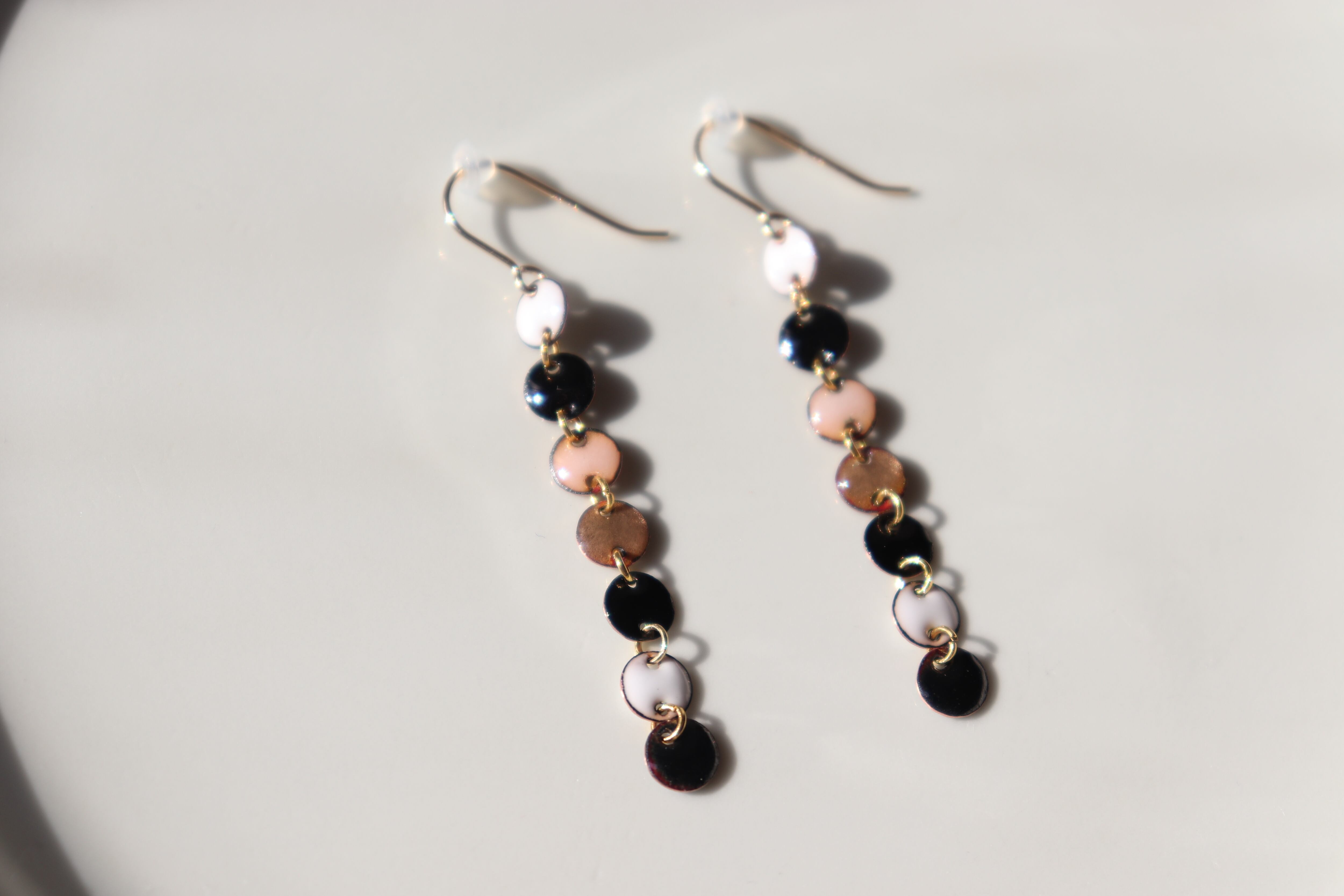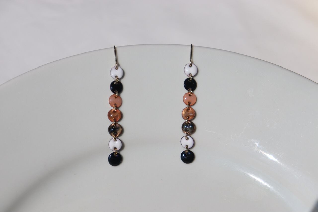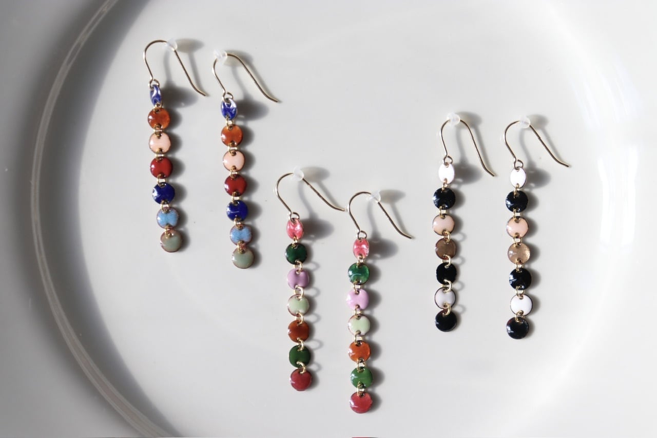 小さな7つの七宝焼きの丸が連なった耳飾り