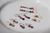 小さな2つの七宝焼きの丸が連なった耳飾り