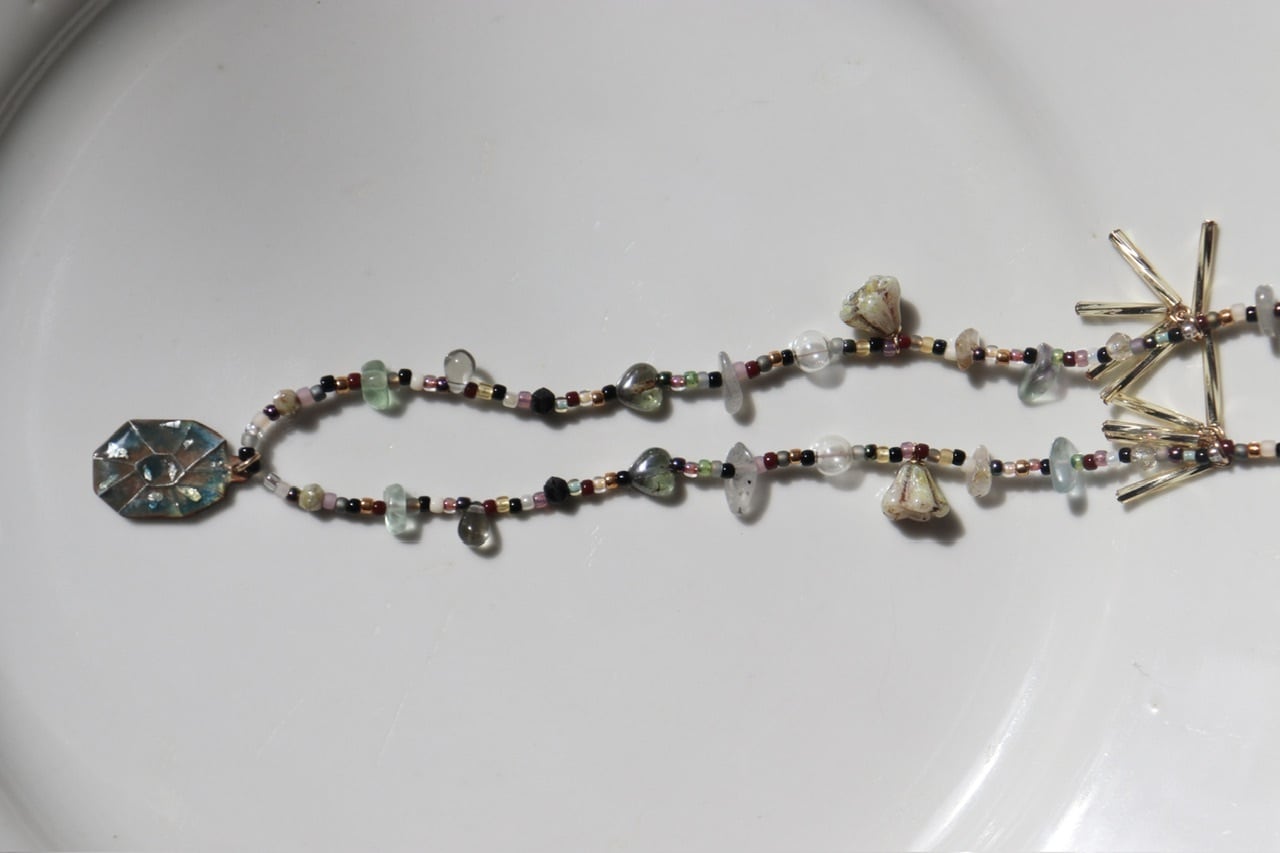 キラキラした宝物を散りばめるように、ヴィンテージビーズなどをあしらえました。