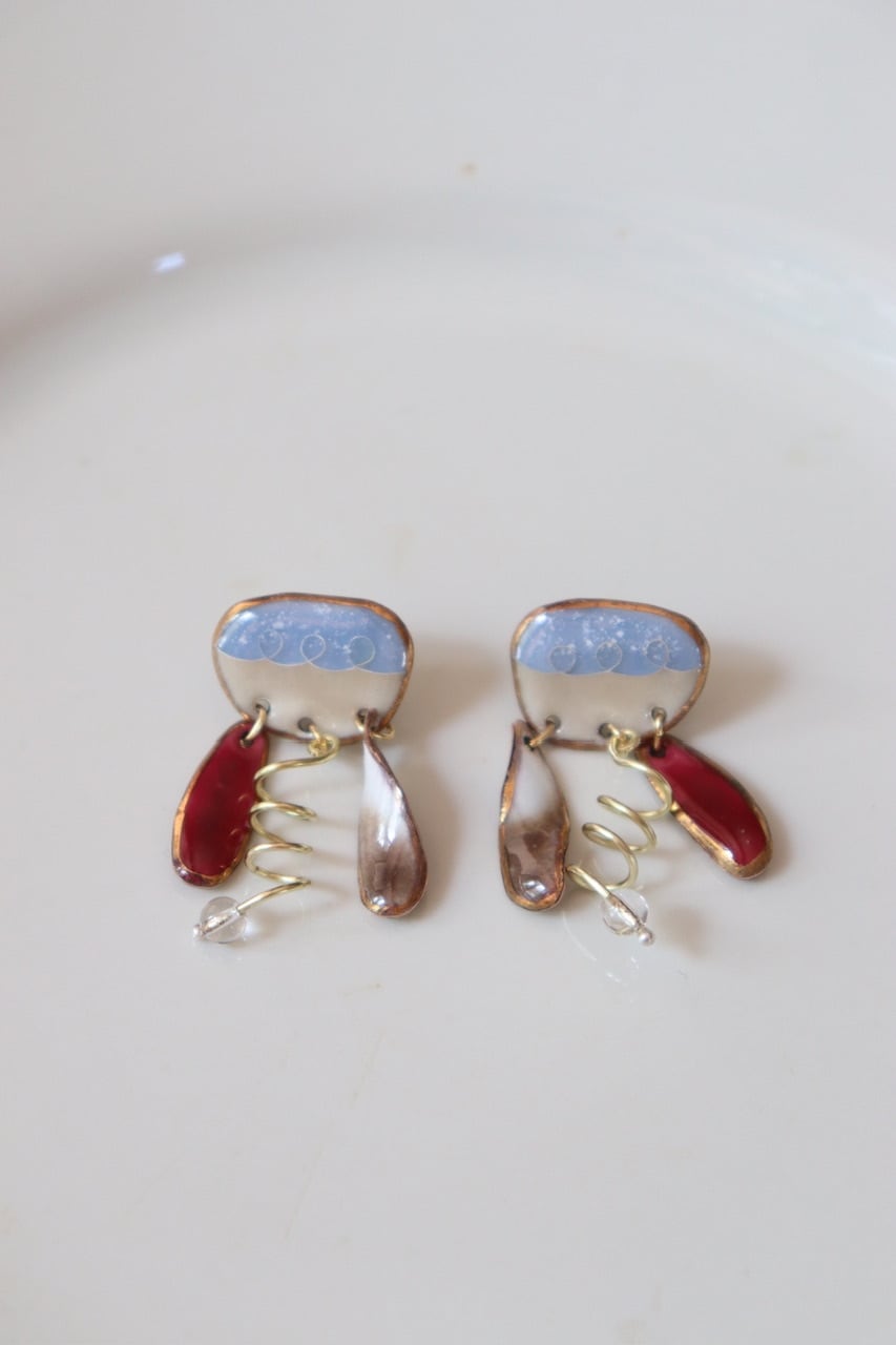 《素材》銅板、釉薬、純銀線、真鍮、水晶、silver925ピアス、ニッケルフリーイヤリング