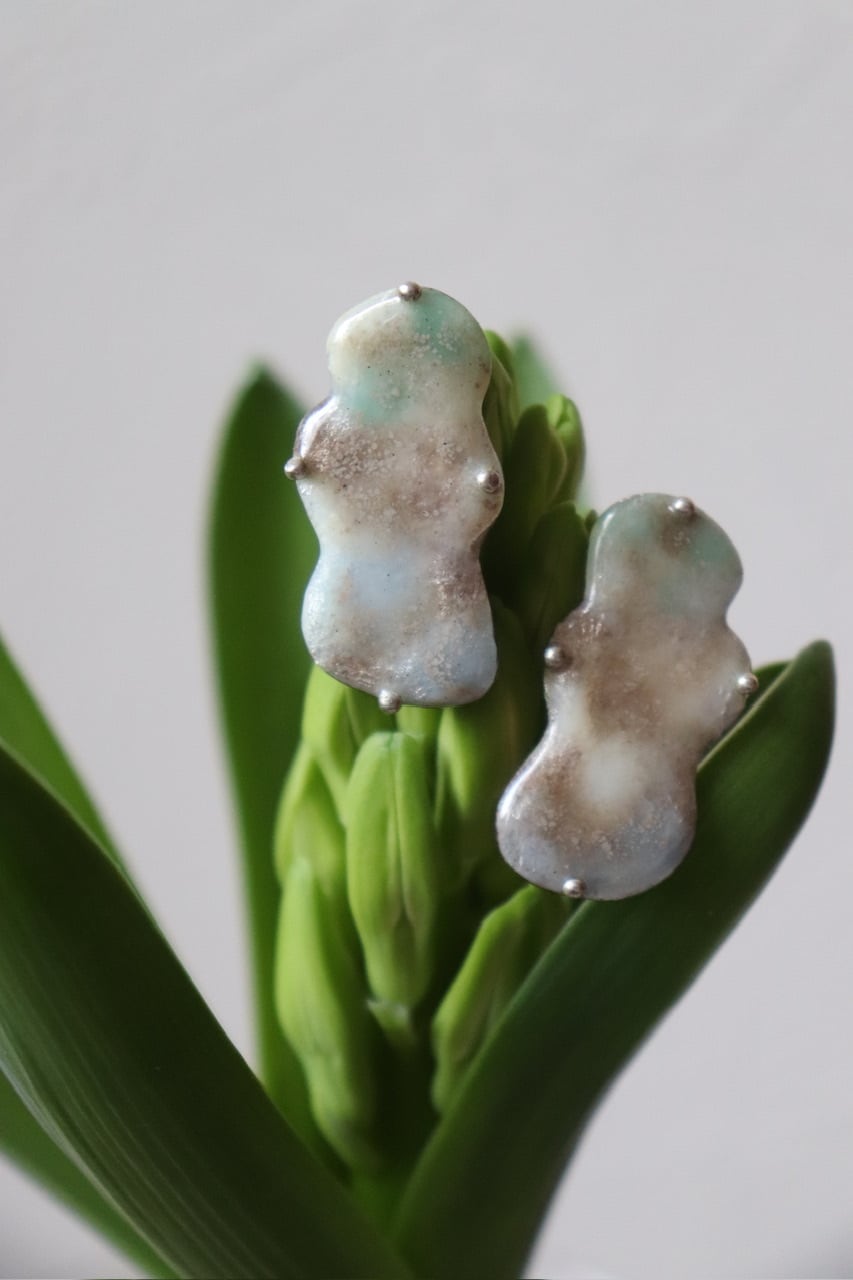 やわらかな霧の中に浮かぶ石のように、淡い色がにじむ七宝のピアス。