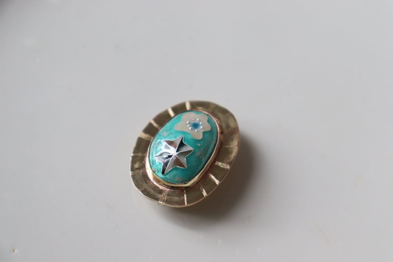 真鍮の温かみある土台に、有線七宝を組み合わせたブローチ&ペンダントトップ。