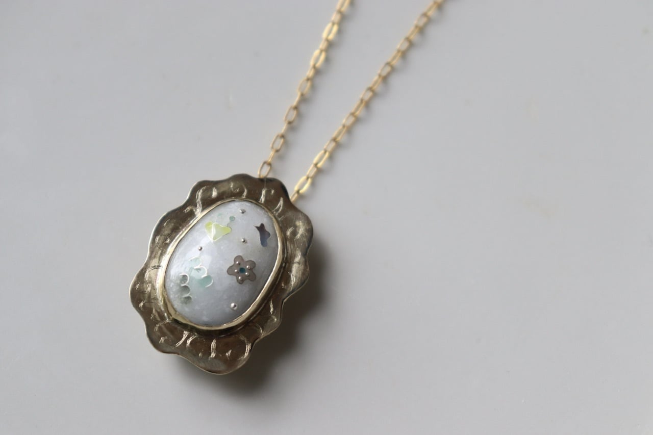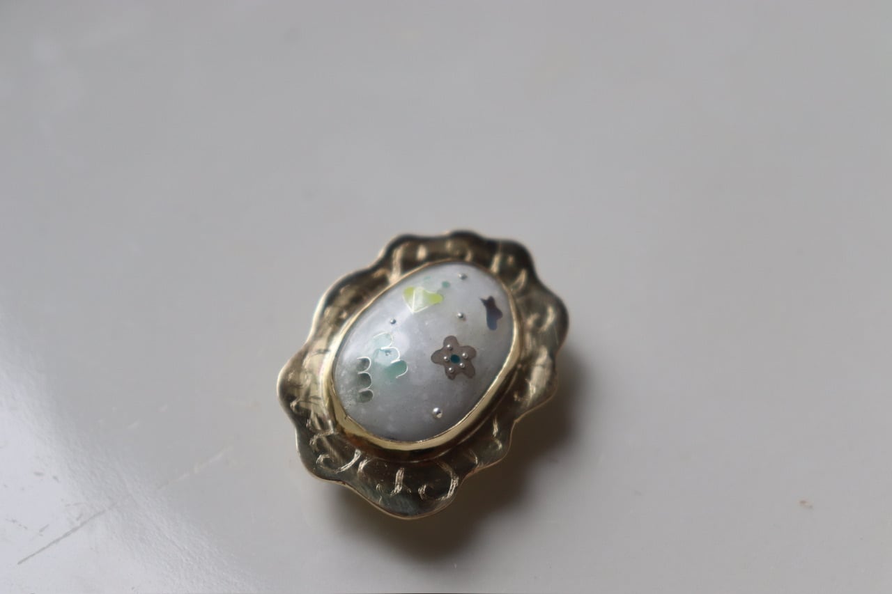 真鍮の温かみある土台に、有線七宝を組み合わせたブローチ&ペンダントトップ。