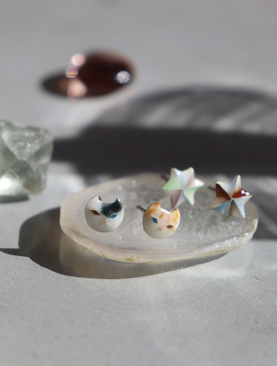 左右で異なる色を宿した、小さな猫の耳飾り。