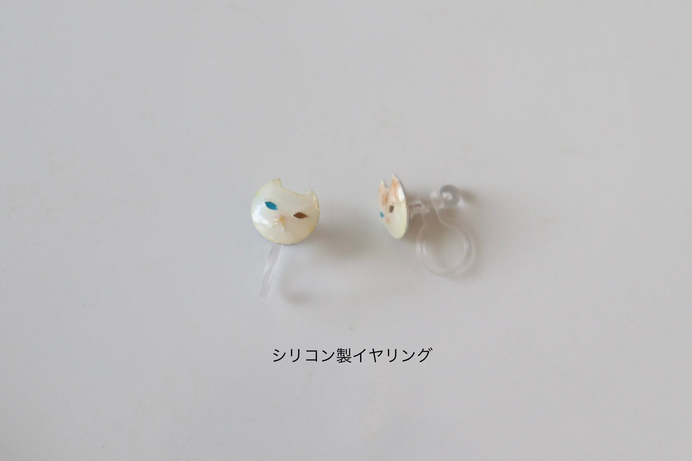 左右で異なる色を宿した、小さな猫の耳飾り。
