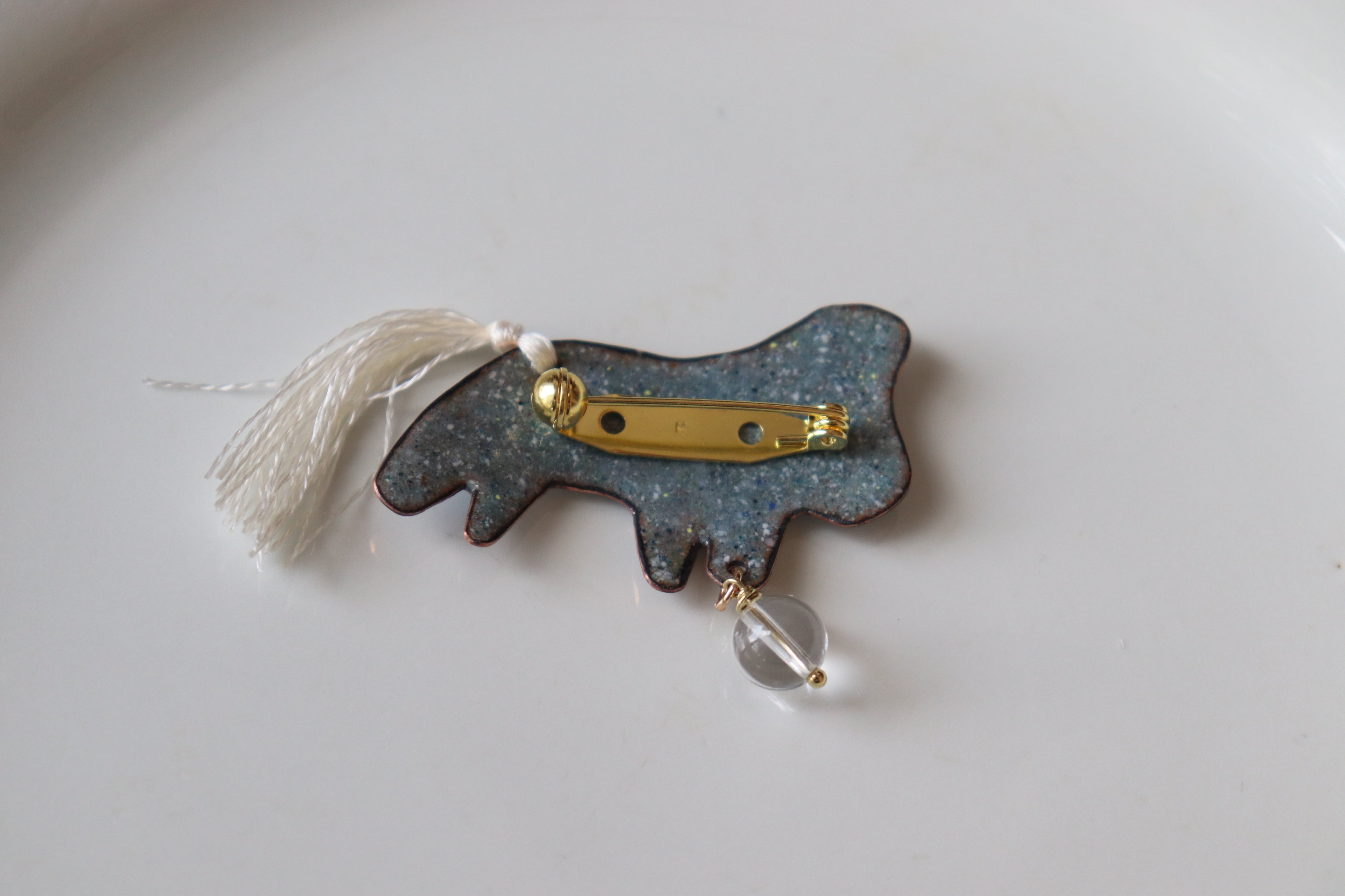 《素材》銅板、釉薬、回転式ブローチ