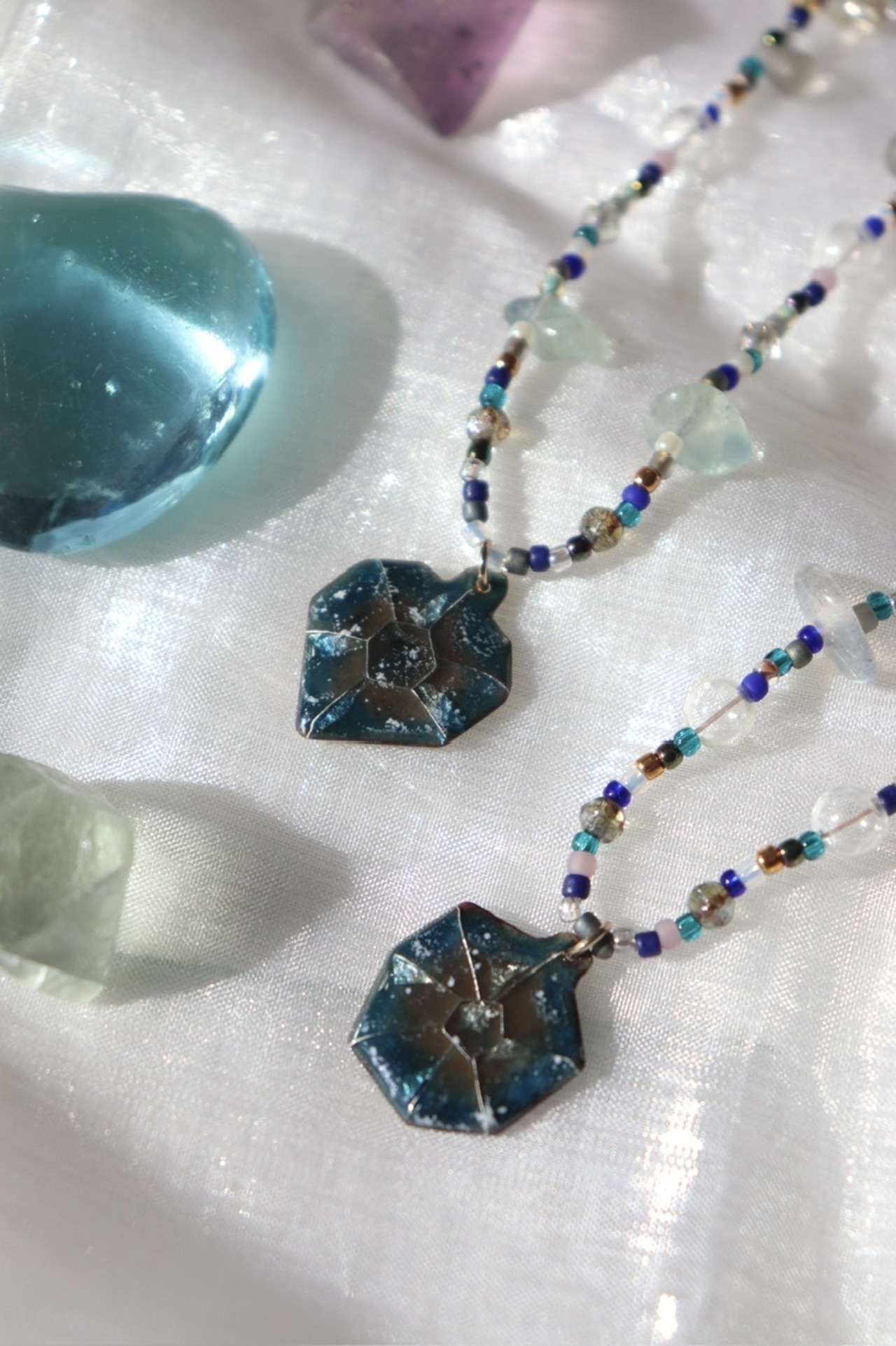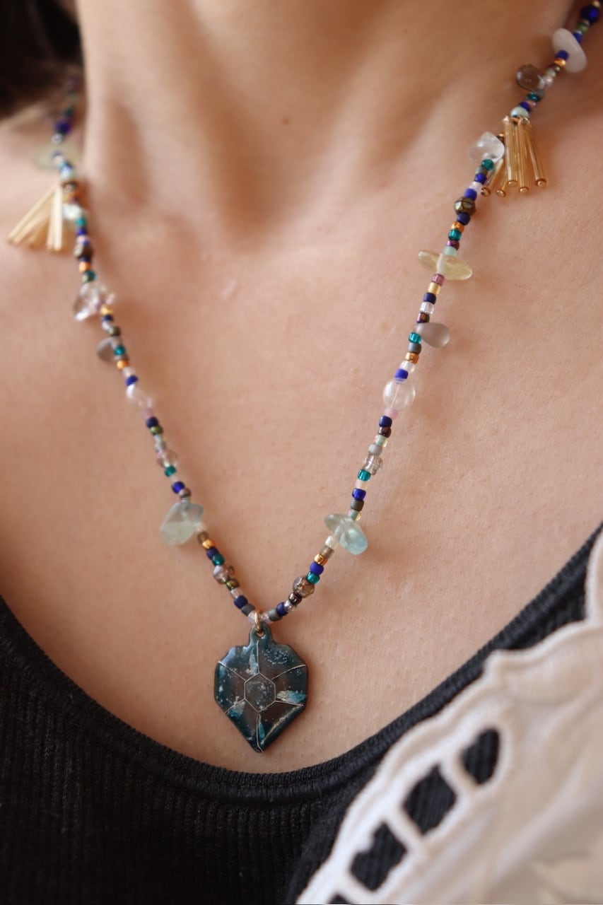 七宝焼きとビーズのネックレス