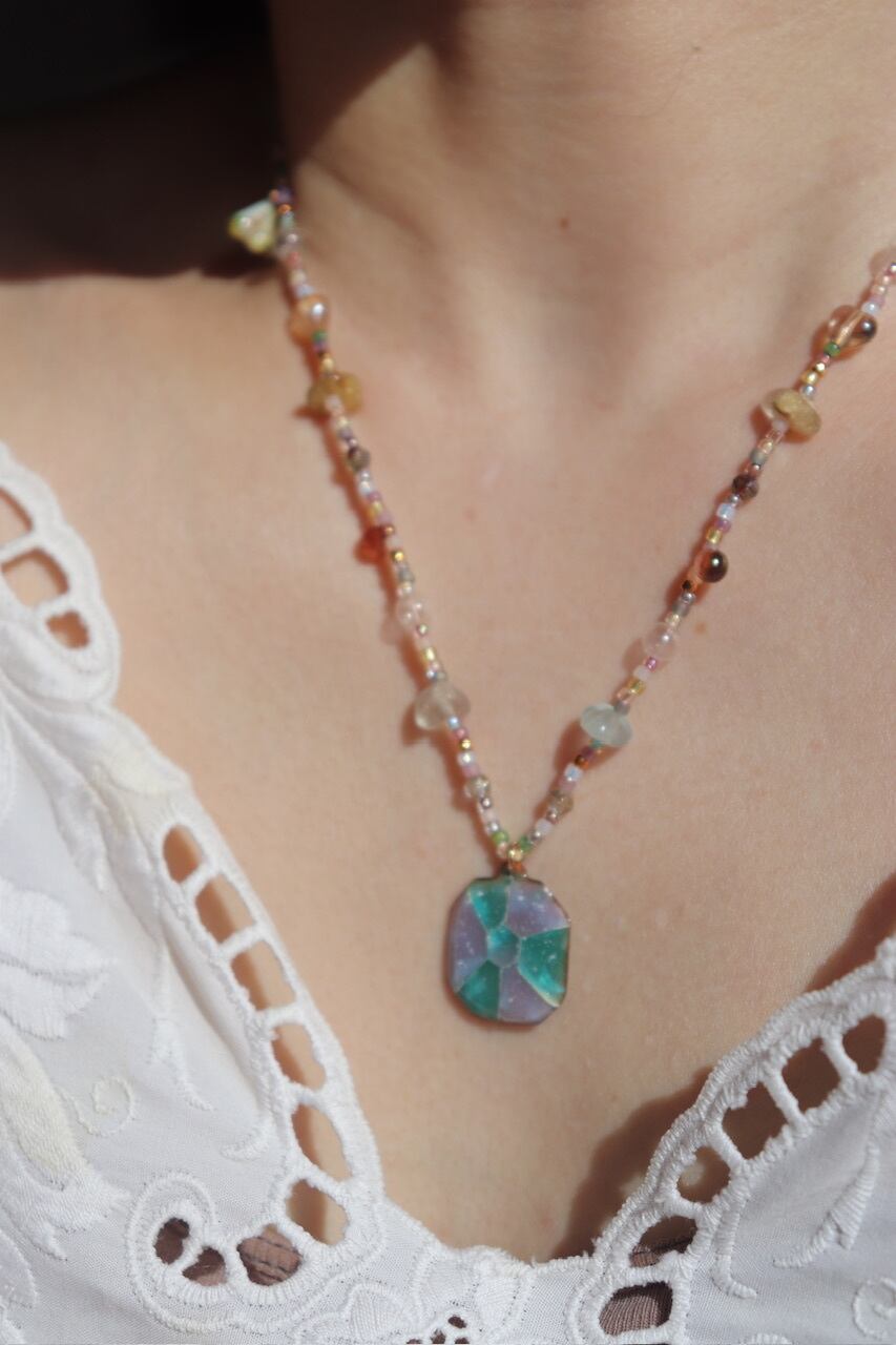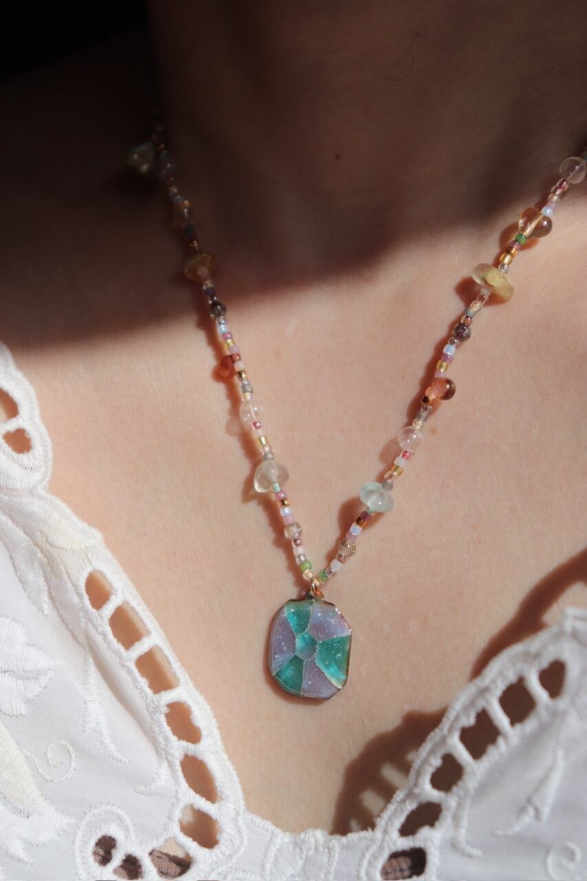 キラキラした宝物を散りばめるように、ヴィンテージビーズなどをあしらえました。