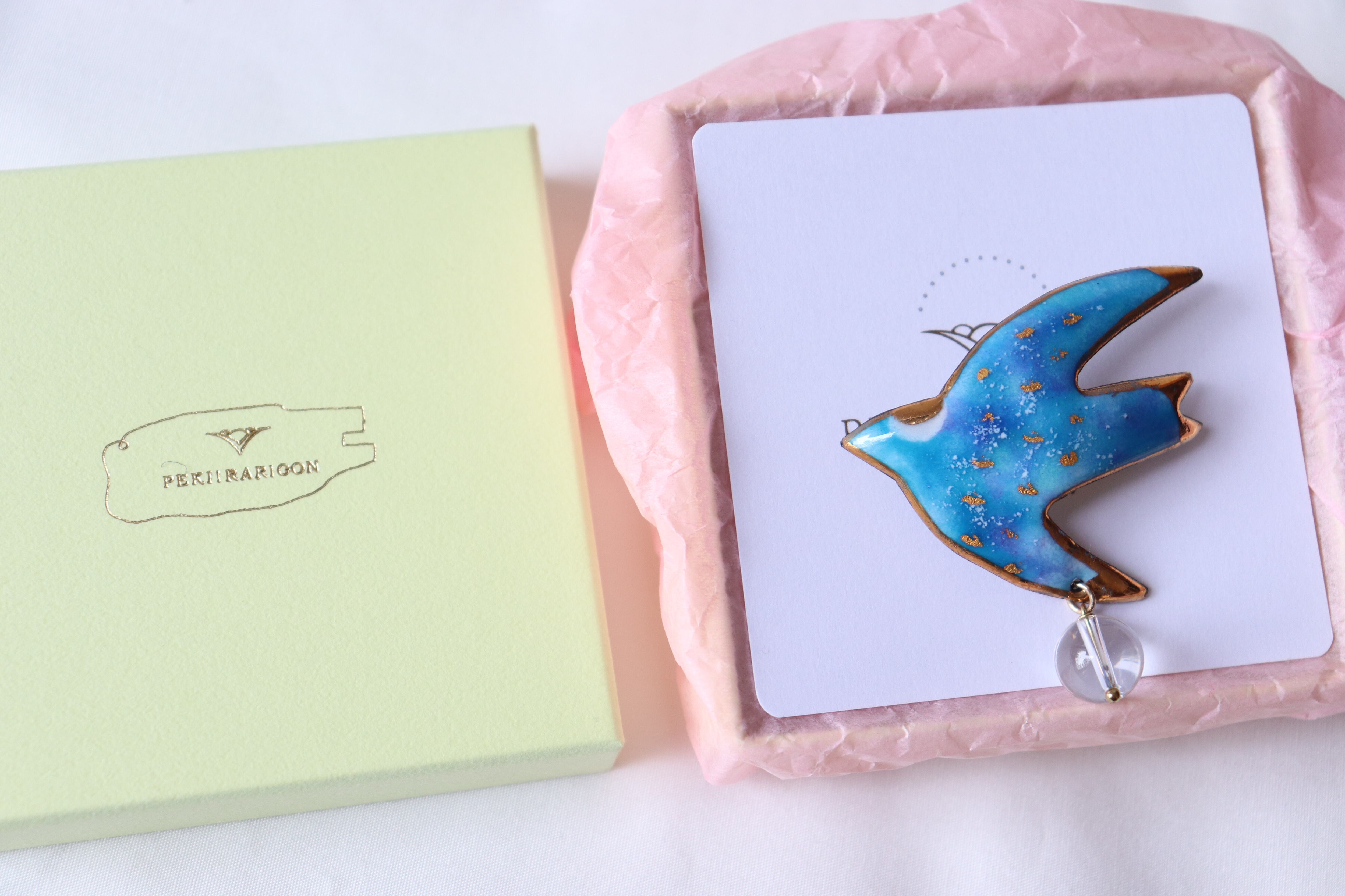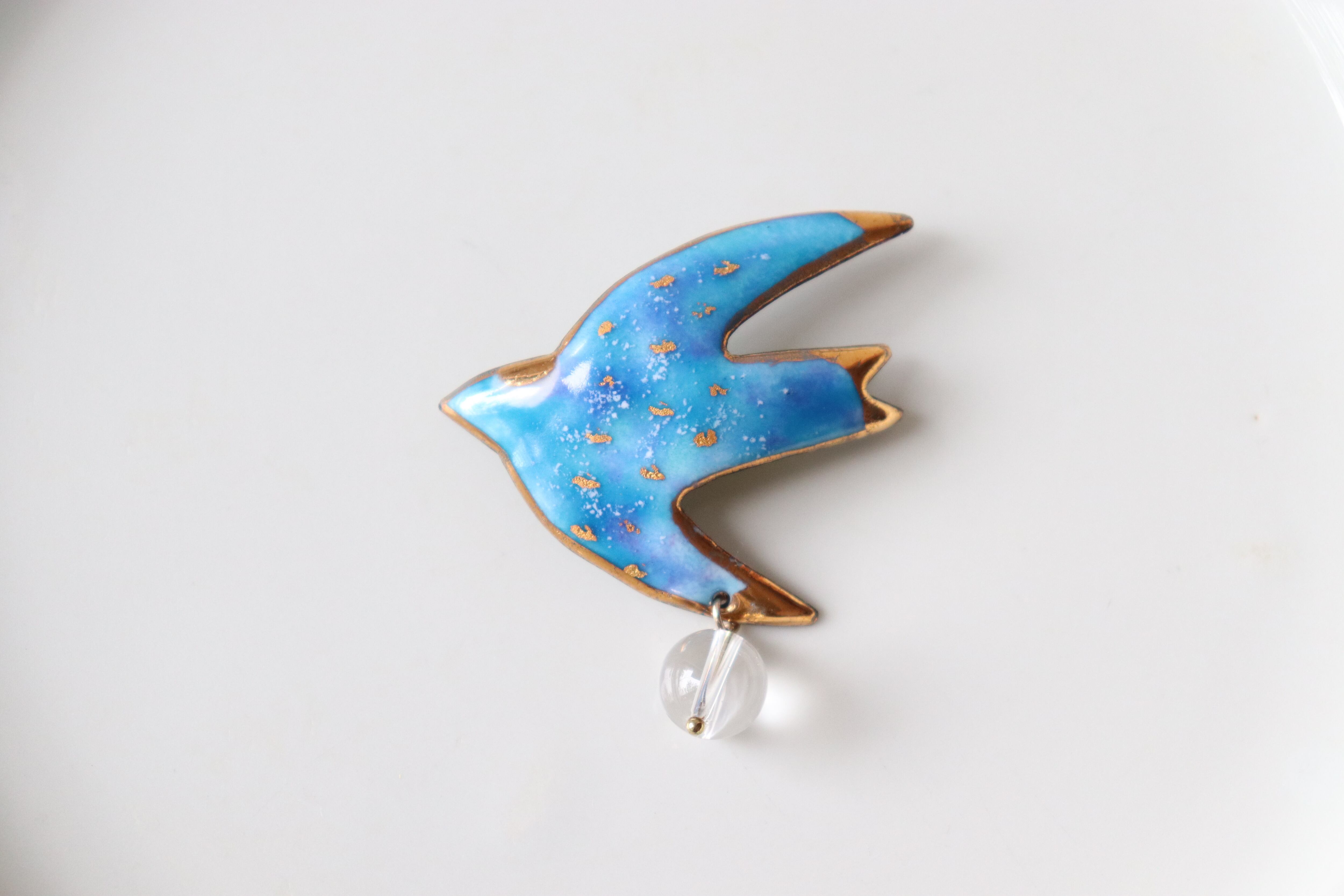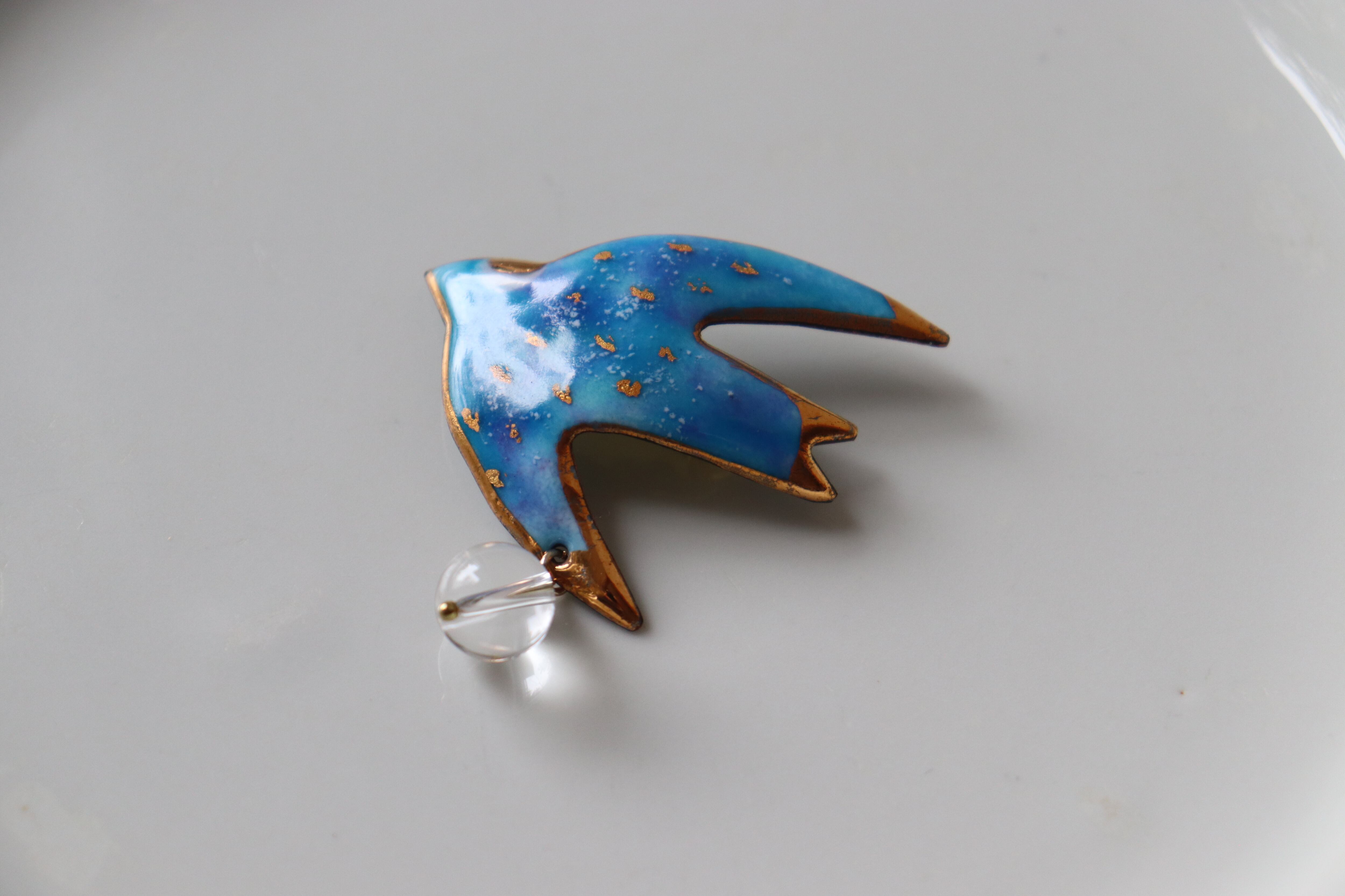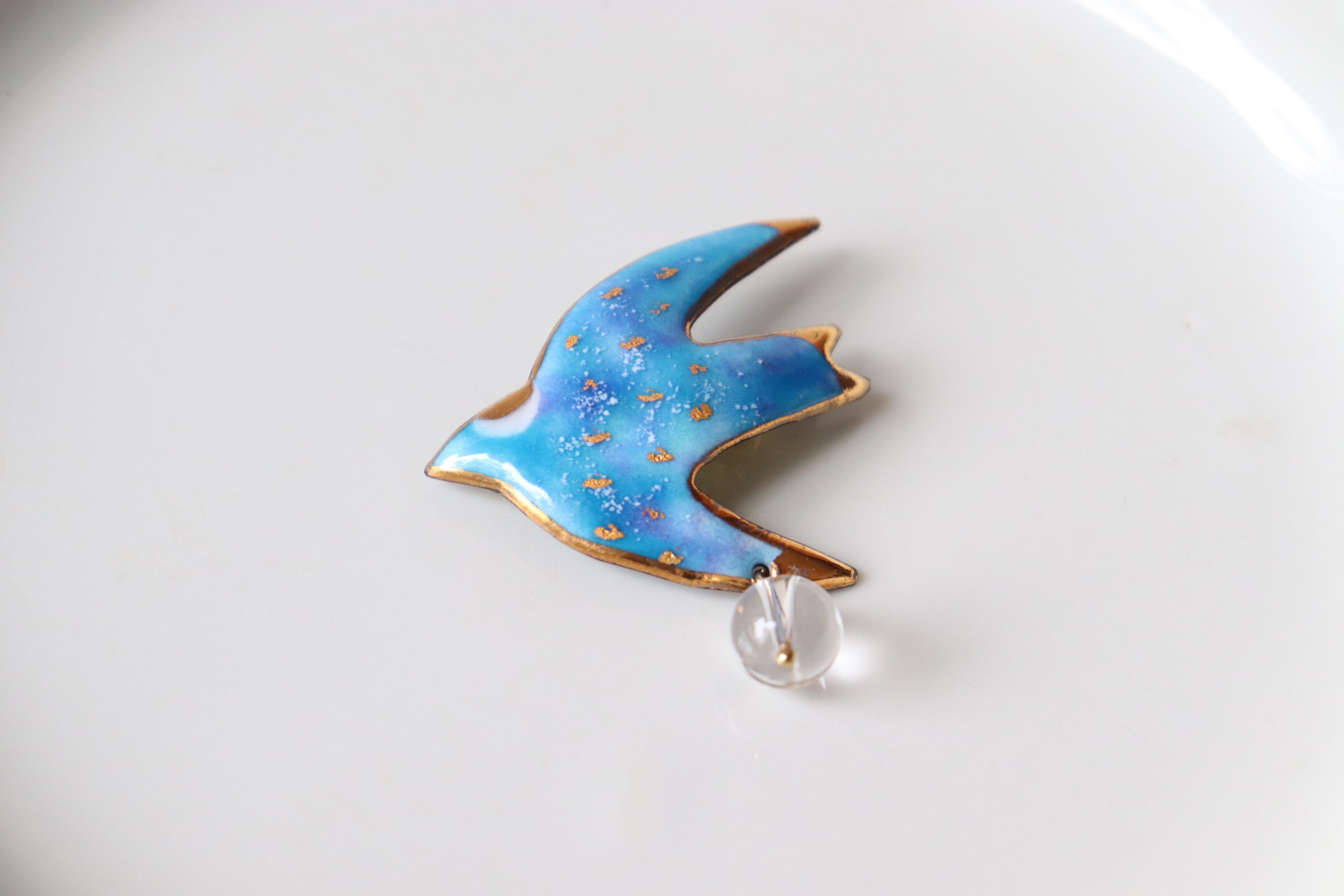 《素材》銅板、釉薬、水晶、回転式ブローチ