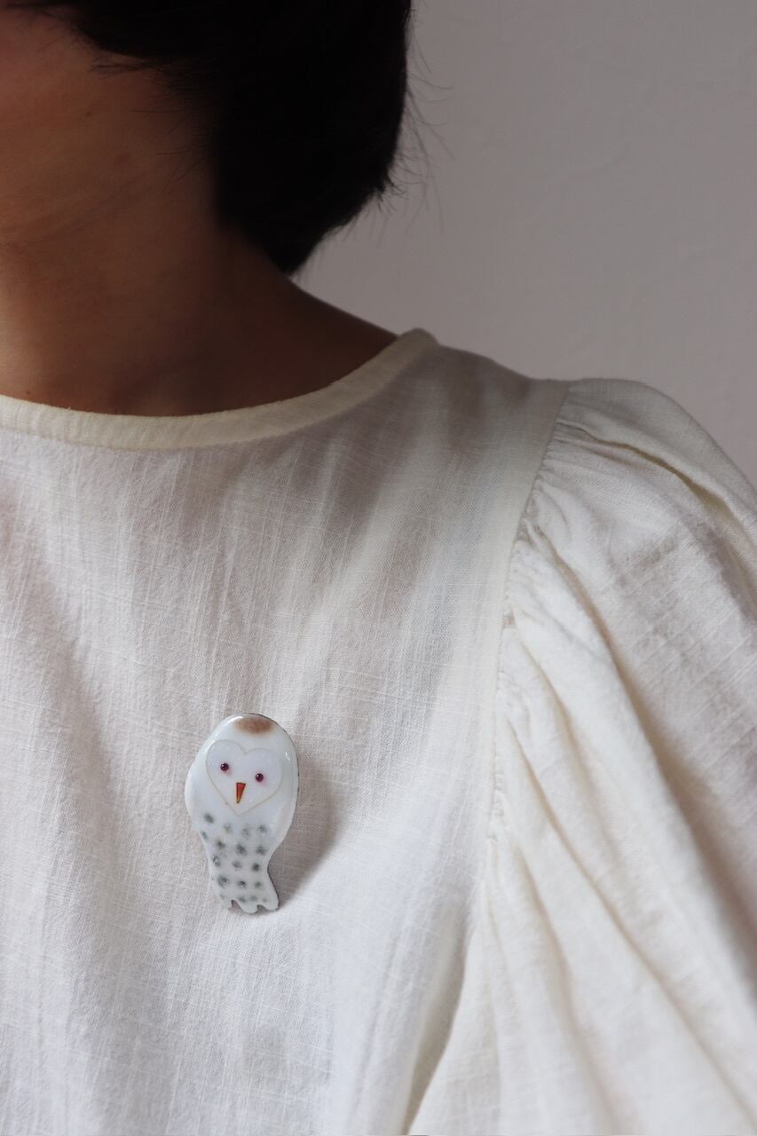フクロウのブローチ-white,black