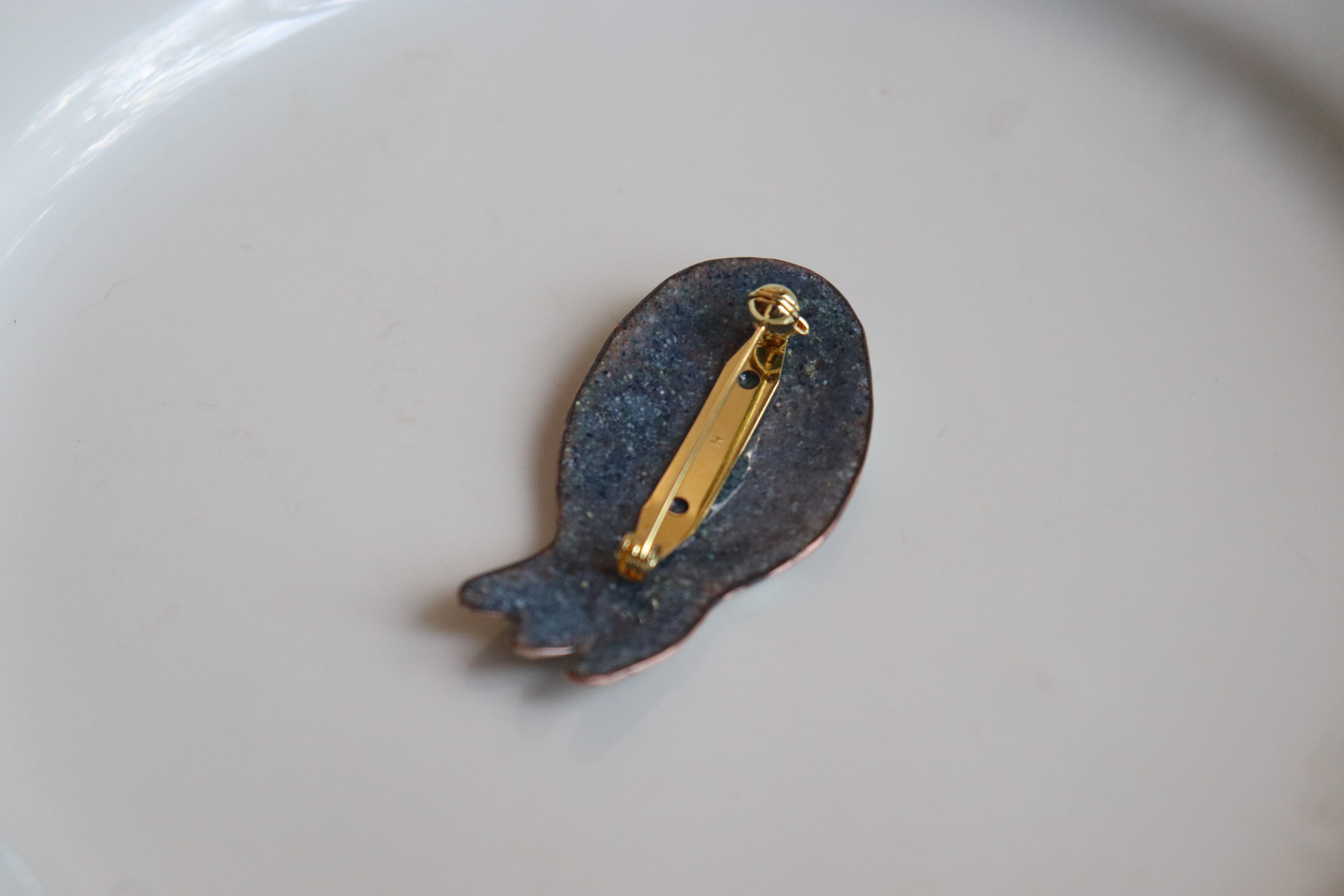 《素材》銅板、釉薬、回転式ブローチ